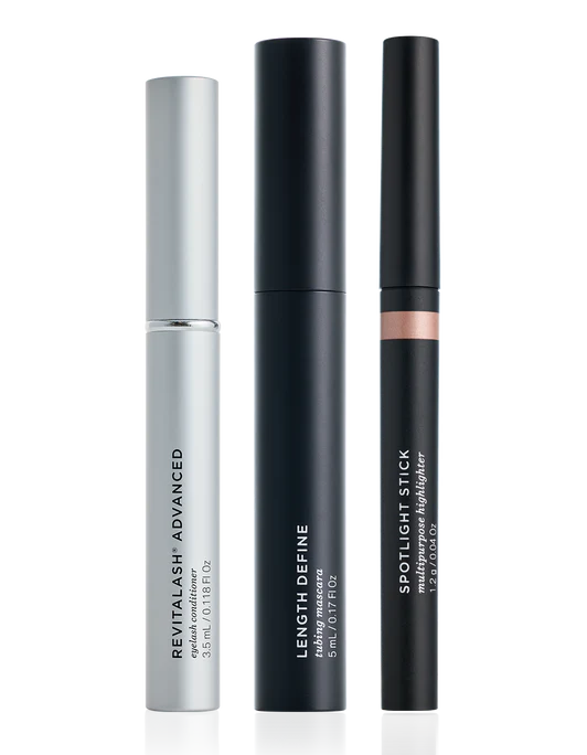 亮眸高光睫毛套裝包含我們最暢銷的睫毛修復增生精華,以及一支正裝纖長塑形睫毛膏和限量亮采高光棒。